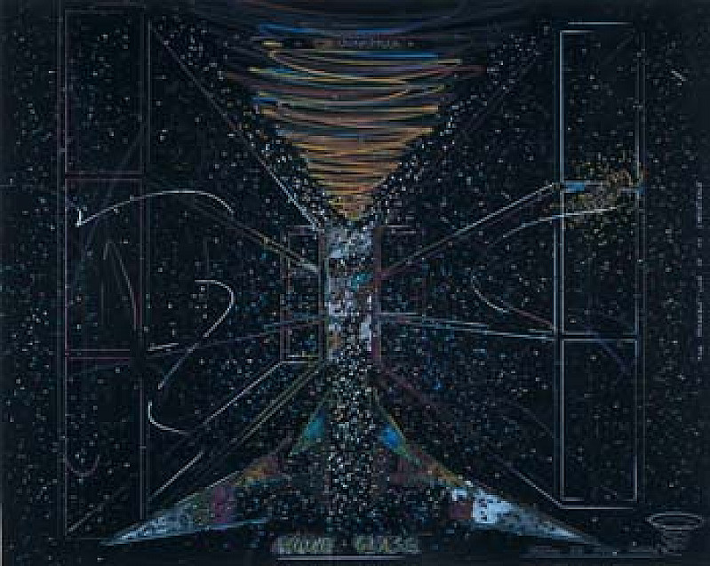 Coloured pencils and pastels on black paper