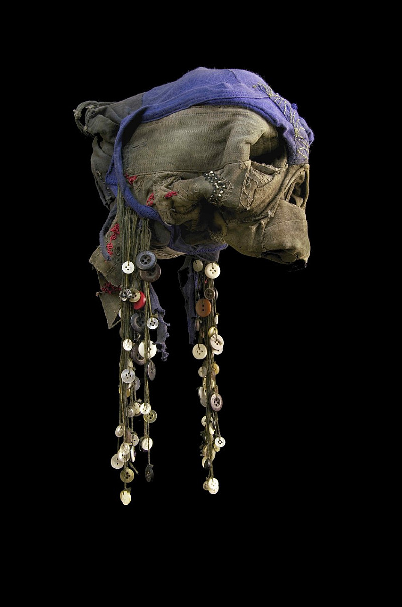 Shining artefact of the past man/woman were inspired by well preserved bodies found at ancient burial sites covered by layers of clothing or burial shrouds and are a continuance of all of the above themes, but also an expansion to the exploration of themes such as the layering of cloth in ancient interments, like layers of soil strata in archaeology or layers of meaning in an artwork and certain attributes of cloth, like the ability to cover, protect, conceal and separate. Each head can be a representation of a person, almost like being an artifact of that persons's life. The photographs were taken in such a way as to suggest pages in a catalogue of a museum of archaeology or from a coffee table book on the subject of archaeology or entomology and suggests another level or layer of representation.