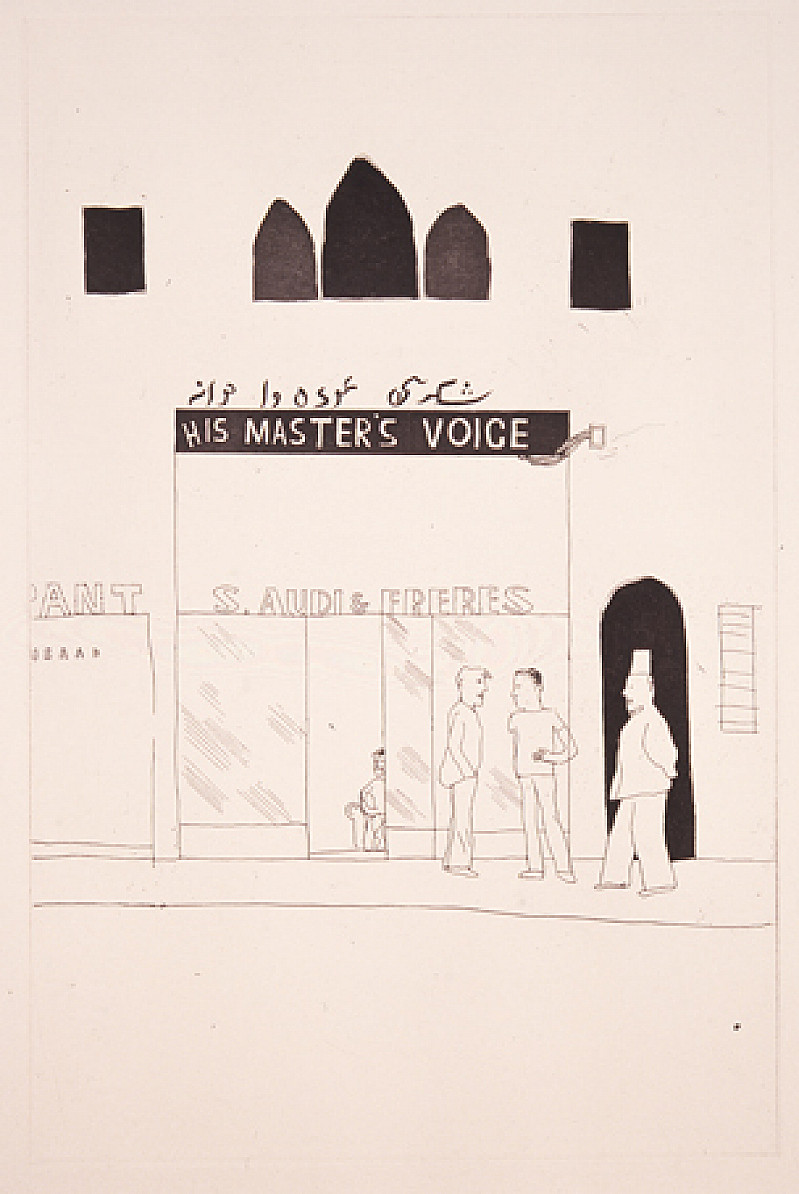 The shop window of a tobacco store, from portfolio of 12 etchings with poems by Cavafy